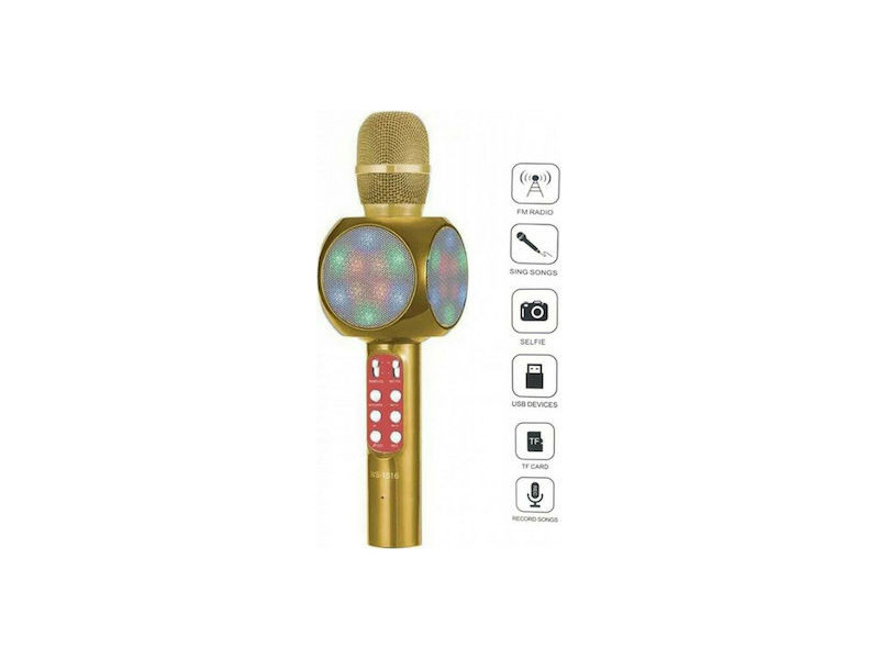 WS-1816 Ασύρματο bluetooth μικρόφωνο με ενσωματωμένο ηχείο, karaoke και disco light Χρυσό