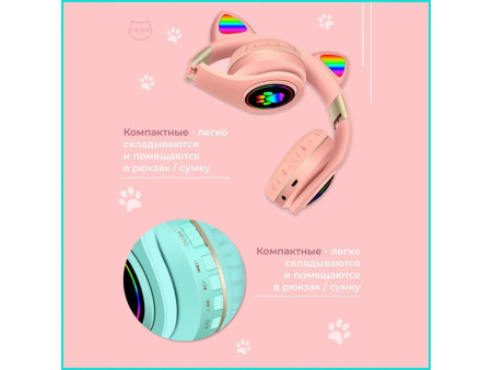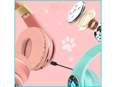 Cat M2 Ασύρματα/Ενσύρματα Over Ear Παιδικά Ακουστικά με 8 ώρες Λειτουργίας Ροζ