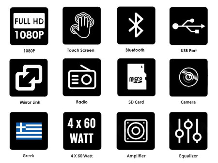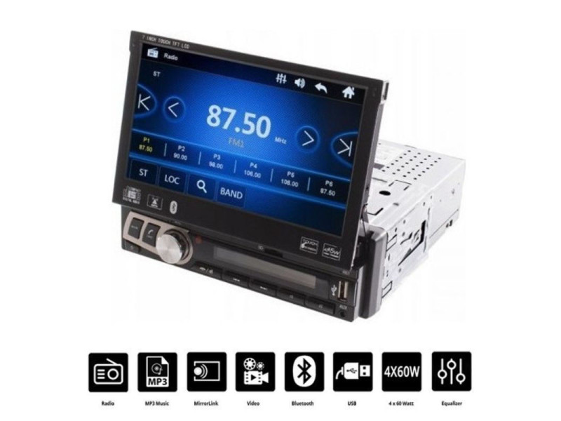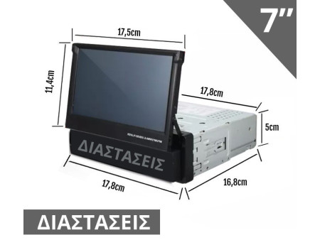 Αναδιπλούμενη οθόνη αυτοκινήτου με αφής 7 ιντσών και Ελληνικό μενού. Ακούστε την αγαπημένη σας μουσική και δείτε βίντεο από το USB στικάκι σας, την microSD κάρτα μνήμης ή κατευθείαν από το κινητό σας μέσω Bluetooth.
