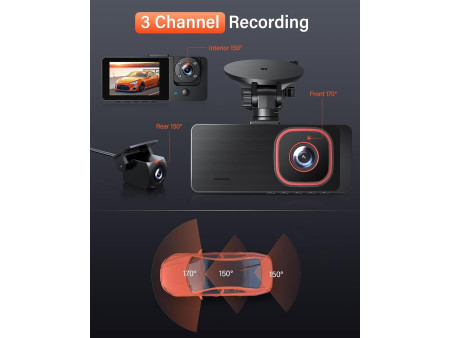 ΚΑΜΕΡΑ ΤΑΜΠΛΟ 3 ΚΑΝΑΛΙΩΝ & ΟΘΟΝΗ LCD 2,35'': Οι πίσω και μπροστινές κάμερες ταμπλό είναι κατασκευασμένες με σύστημα τριπλών καναλιών, παρέχουν μπροστινή κάμερα 170°, εσωτερική καμπίνα 150° και πίσω κάμερα 150° (1080P +720p +720P). Η κάμερα ταμπλό αυτοκινήτου είναι εξοπλισμένη με οθόνη LCD 2,35'' που σας επιτρέπει να βλέπετε διαφορετικές γωνίες του οχήματός σας στην οθόνη. Καταγράφει ταυτόχρονα βίντεο από το μπροστινό, το πίσω μέρος και την καμπίνα του αυτοκινήτου σας ως ζωτικής σημασίας στοιχεία για συγκρούσεις ή ατυχήματα, παρέχοντας πλήρη προστασία στο όχημά σας.
