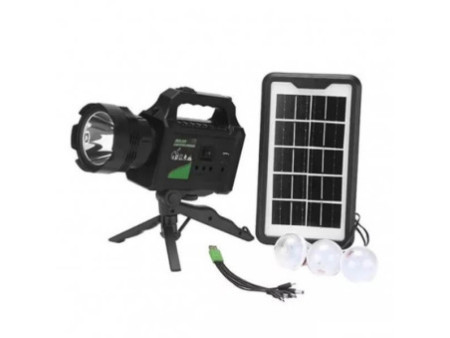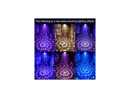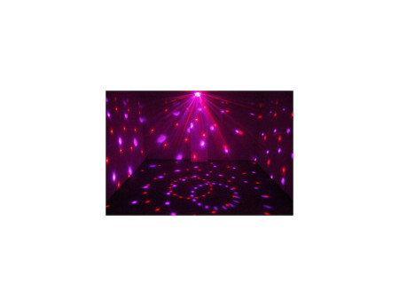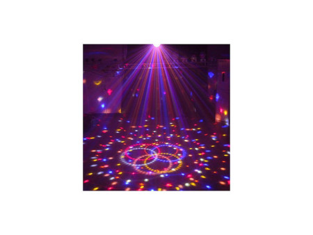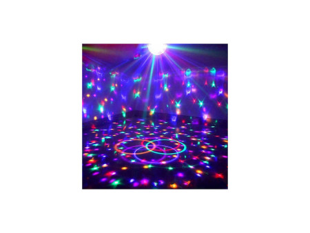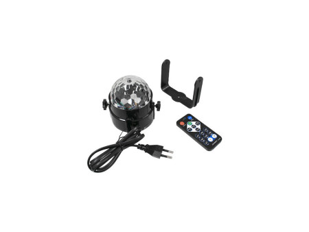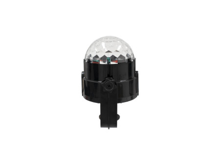 Φωτορυθμικό φωτιστικό party light, σε μαύρο χρώμα. Διαθέτει ενσωματωμένο LED που μπορεί να πάρει διάφορες αποχρώσεις συνδυάζοντας τα χρώματα κόκκινο, πράσινο και μπλε.
