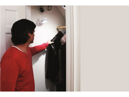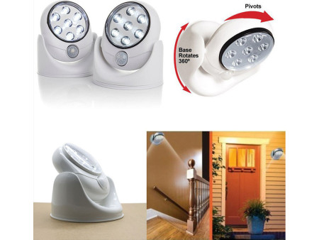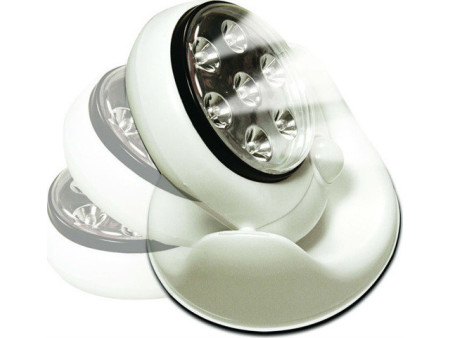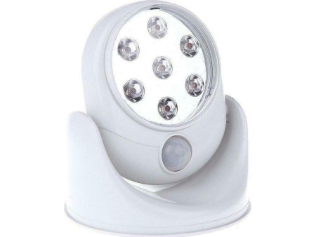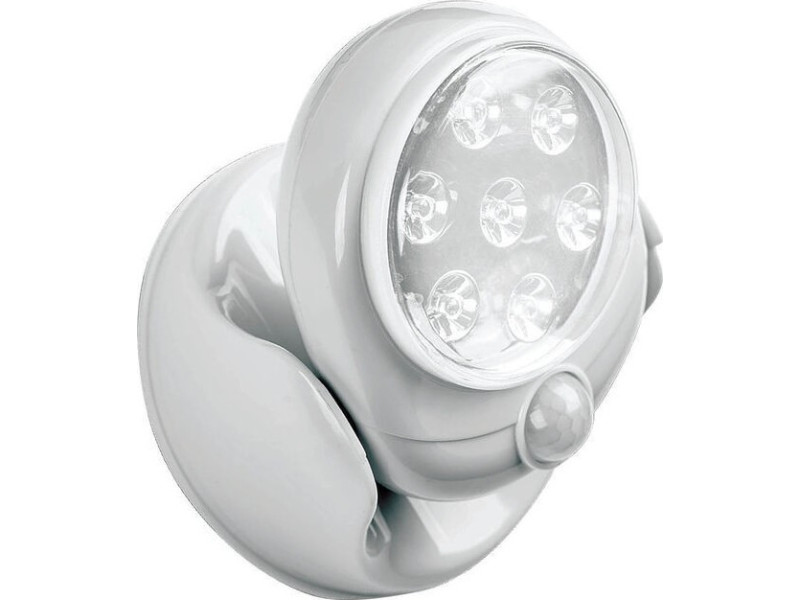 Φορητός LED προβολέας με περιστρεφόμενη βάση 360° και αισθητήρα που ενεργοποιεί τον φωτισμό μόλις αντιληφθεί κίνηση. Τροφοδοτείται μέσω 4 μπαταριών ΑΑ (δεν περιλαμβάνονται).