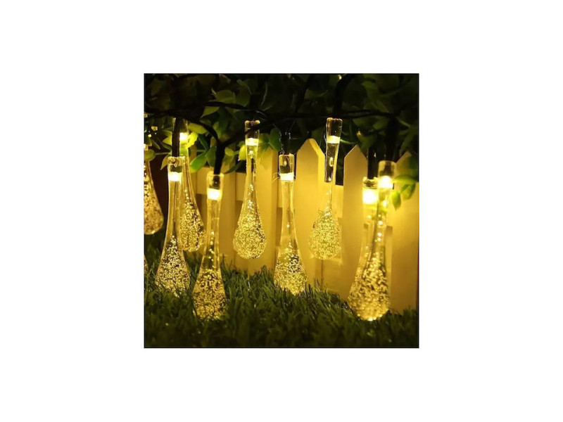 Σετ LED φωτάκια 6,5 μέτρων με θερμό λευκό φωτισμό και ηλιακό πάνελ, ιδανικά για διακόσμηση εξωτερικών και εσωτερικών χώρων με αυτόνομη ηλιακή λειτουργία.