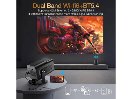 Η ποιότητα εικόνας του προτζέκτορα είναι εντυπωσιακή, με φωτεινότητα 450 Lumens και αντίθεση 450:1. Διαθέτει θύρες USB, AUX, HDMI και θύρα TF Card έως 128GB. Η ανάλυση του φτάνει έως 4K.