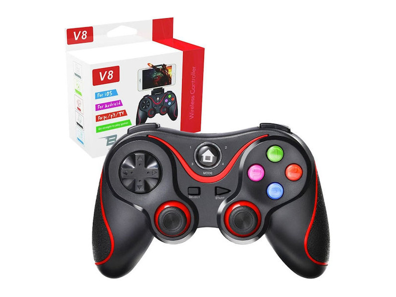 Ασύρματο χειριστήριο V8 κατάλληλο για κινητά, κονσόλες και υπολογιστές. Υποστηρίζει iOS, Android, Switch, PS3/PS4 και PC, προσφέροντας σταθερή σύνδεση και άνετο έλεγχο σε παιχνίδια και εφαρμογές.