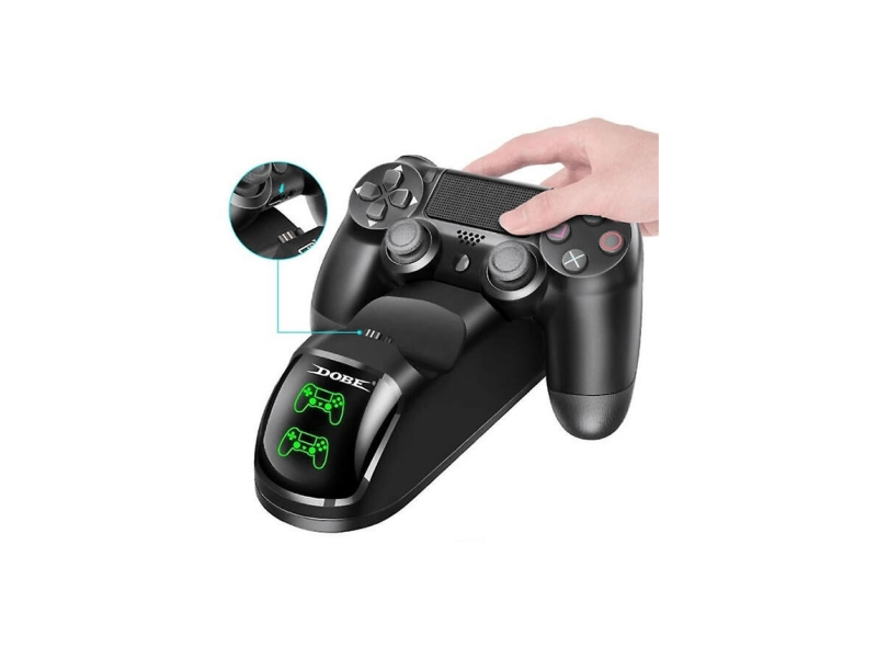 Πρακτική βάση φόρτισης της iPega για ασύρματα χειριστήρια PS4, που επιτρέπει ταυτόχρονη φόρτιση δύο χειριστηρίων με ασφάλεια και ευκολία.