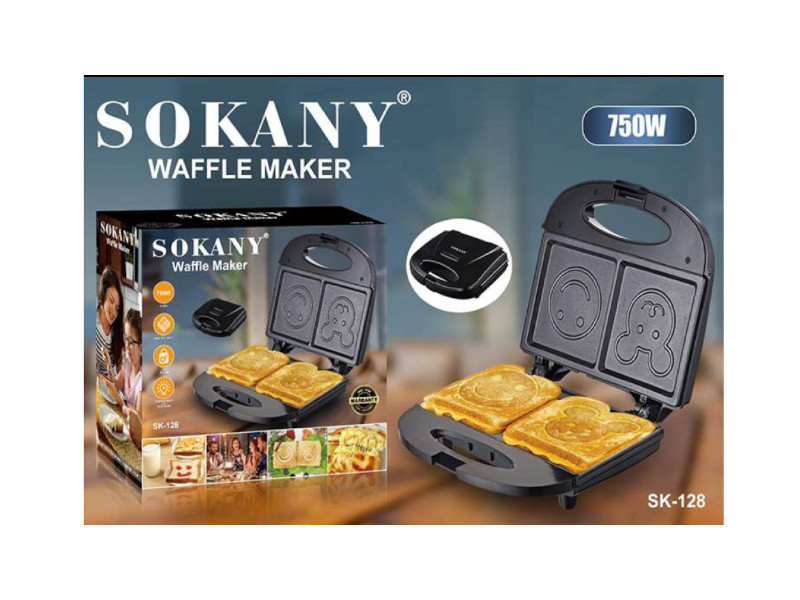 Τοστιέρα για 2 σάντουιτς με σχέδια 750W Sokany SK-128. Είναι κατάλληλη για την εύκολη και γρήγορη παρασκευή νόστιμων σνακ. Διαθέτει ενδεικτική λυχνία, που υποδεικνύει πότε είναι η κατάλληλη στιγμή να αφαιρεθούν τα σάντουιτς.