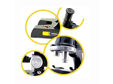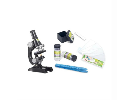 Φέρει τσιμπίδα και εξαρτήματα όπως πλακέτες και φυαλίδια που μπαίνουν κάτω από τον φακό του μικροσκοπίου. Το παιδί μπορεί να μαζεύει τα δείγματα του και να τα αναλύει και εξερευνεί με την βοήθεια του μικροσκοπίου.Είναι ένα εξαιρετικό σετ με εκπαιδευτικό χαρακτήρα κατάλληλο για κάθε παιδί που θέλει να ανακαλύψει έναν νέο κόσμο.
