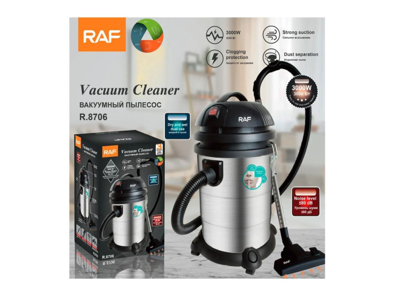 Σκούπα υγρών/στερεών της εταιρείας Raf, με χωρητικότητα 30 λίτρα. Είναι κατάλληλη για την απομάκρυνση ακαθαρσιών μεγαλύτερου μεγέθους, σε σχέση με αυτές που μπορεί να διαχειριστεί μία συμβατική ηλεκτρική σκούπα. Μεγάλο της πλεονέκτημα είναι ότι μπορεί να απορροφήσει ακαθαρσίες υγρής μορφής, εύκολα και γρήγορα και κυρίως χωρίς να επιβαρυνθεί.