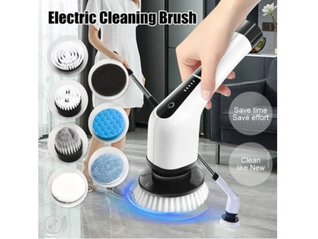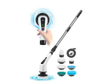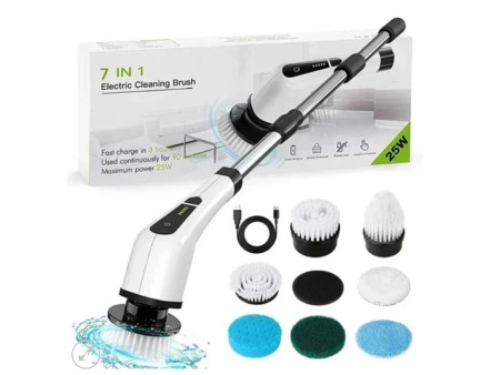 Πολυλειτουργική ηλεκτρική βούρτσα καθαρισμού 7 σε 1, 25W. Αυτή η ισχυρή συσκευή είναι εξοπλισμένη με επτά εναλλάξιμες κεφαλές, σχεδιασμένες για να αντιμετωπίζουν κάθε είδους βρωμιά και λεκέδες, από το μπάνιο και την κουζίνα μέχρι τα πλακάκια και τα έπιπλα.