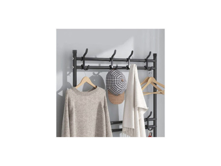 Έπιπλο εισόδου με κρεμάστρα και παπουτσοθήκη 4 επιπέδων. Τα ράφια είναι ιδανικά για την οργάνωση τσαντών, παπουτσιών και διαφόρων αξεσουάρ. Στη ράγα μπορείτε να τοποθετήσετε κρεμάστρες με ρούχα, καπέλα, ομπρέλες κ.λπ. Κατάλληλη για χρήση σε μικρούς εσωτερικούς χώρους όπως studio, airbnb, hostel κλπ.