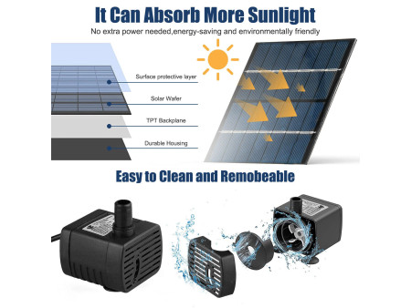 Startup: The pump cannot work without sunlight, when the pump receives sufficient sunlight, the pump will start up within 3 seconds.