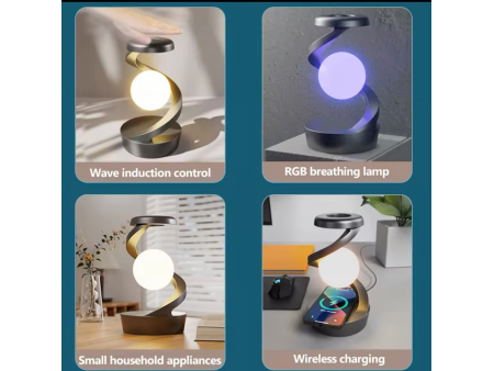 Επιτραπέζιο φωτιστικό, δημιουργικό νυχτερινό φως με ασύρματο φορτιστή, περιστρεφόμενο 360° αιωρούμενο νυχτερινό φως RGB για υπνοδωμάτιο/σαλόνι/πάρτι/γενέθλια/εγκαίνια σπιτιού, ατμοσφαιρικό φως υπνοδωματίου