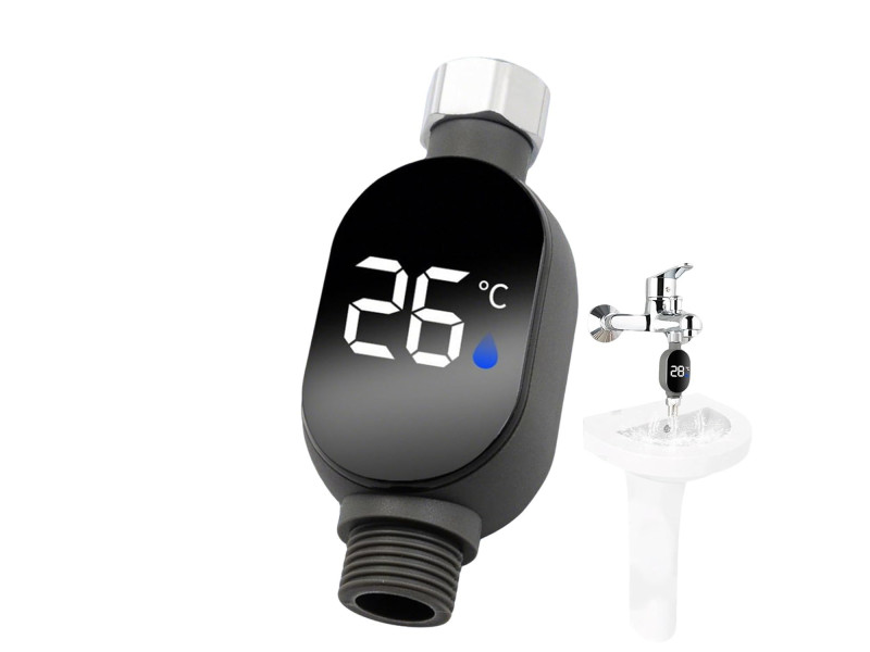 Ψηφιακό θερμόμετρο νερού για ντους με LED ένδειξη που δείχνει σε πραγματικό χρόνο τη θερμοκρασία.
