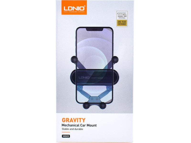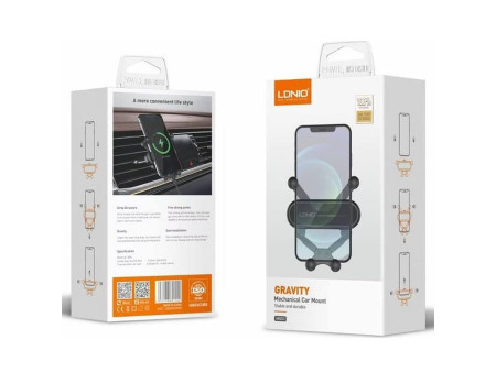 Βάση κινητού αυτοκινήτου της εταιρείας Ldnio. Πρόκειται για τον πιο διαδεδομένο τύπο βάσης καθώς στηρίζεται στον αεραγωγό του κλιματισμού ή του καλοριφέρ αυτοκινήτου. Η στήριξη της συσκεύης στη βάση γίνεται με ρυθμιζόμενα άγκιστρα. Διαθέτει περιστροφή για πιο εύκολη ρύθμιση της επιθυμητής θέσης της συσκευής