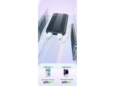 Ο φορτιστής AWEI P20K είναι εφοδιασμένος με μπαταρία 10000 mAh υψηλής χωρητικότητας, παρέχοντας αρκετή ενέργεια για μεγάλες διαδρομές. Με αυτή τη χωρητικότητα, μπορείτε να φορτίσετε το κινητό σας και τον υπολογιστή σας πολλές φορές, επιτρέποντάς σας να πείτε αντίο στην ανησυχία για εξάντληση της μπαταρίας κατά τη διάρκεια των ταξιδιών. Μπορείτε να εστιάσετε στην εργασία, την ψυχαγωγία ή άλλες σημαντικές δραστηριότητες χωρίς να ανησυχείτε για την αναζήτηση πηγής ενέργειας.
