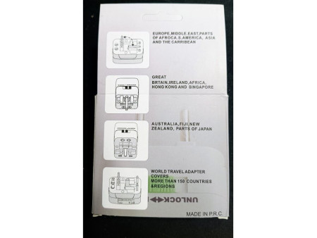 Αντάπτορας με πρίζα τύπου A, B και G που είναι συμβατός με βύσματα ΗΠΑ, Καναδά, Κίνα, Ηνωμένο Βασίλειο και Ιρλανδία και πρίζα τύπου F που είναι συμβατή με βύσματα σε Ελλάδα, Γερμανία, Ιταλία, Ισπανία, Τουρκία και Ρωσία.